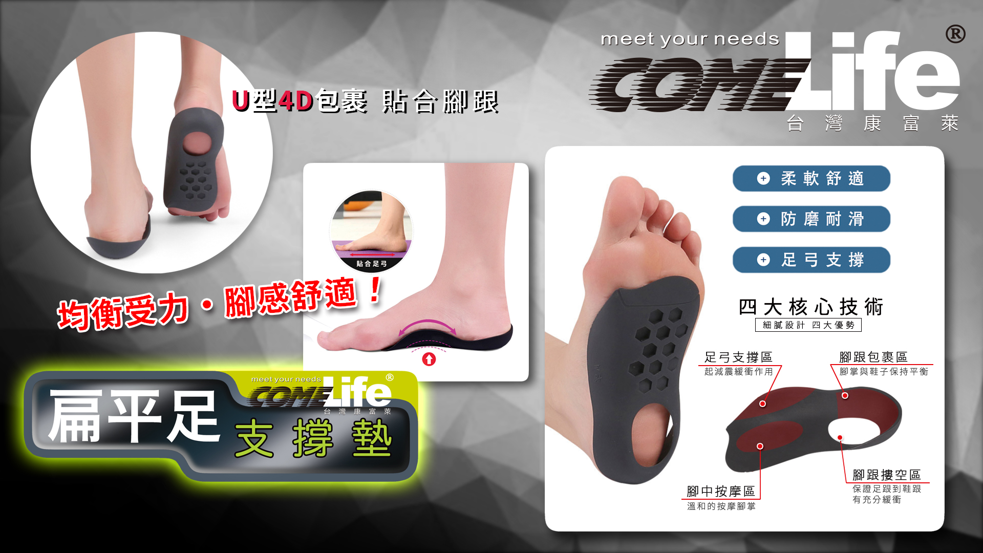 多樣設計:台灣康富萊股份有限公司提供COMELIFE 扁平足支撐墊的多樣化設計,商品繁多歡迎洽購