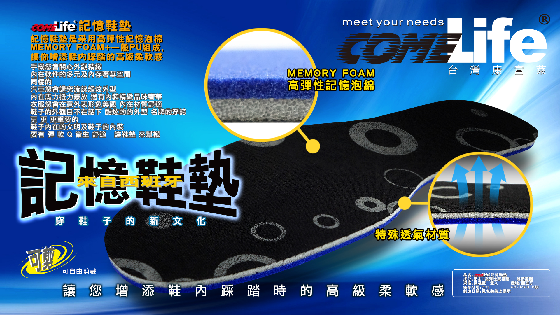 COMELIFE 記憶鞋墊接受進行原廠委託設計製造ODM
