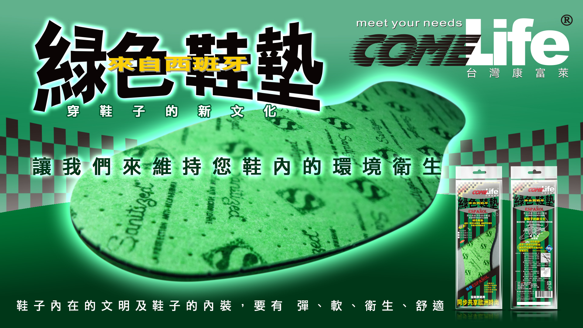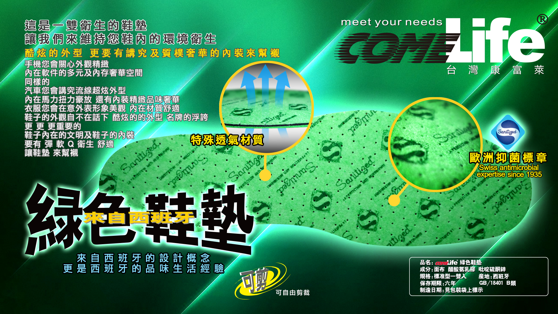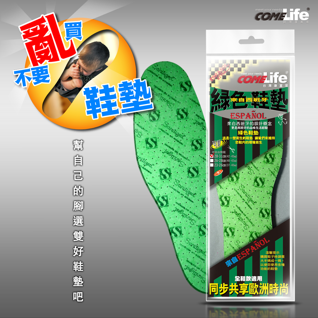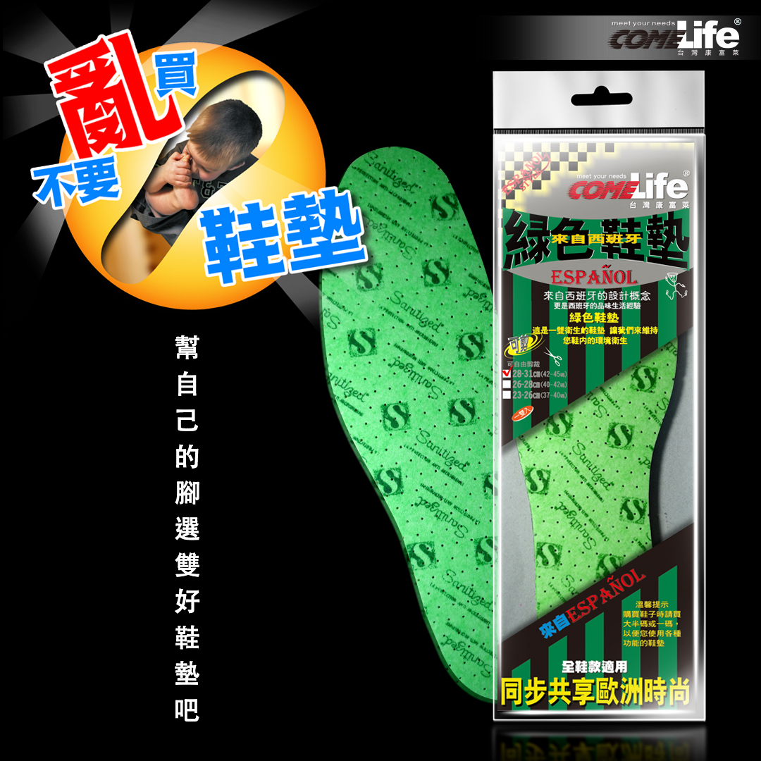 COMELIFE 台灣康富萊 綠色鞋墊 來自西班牙