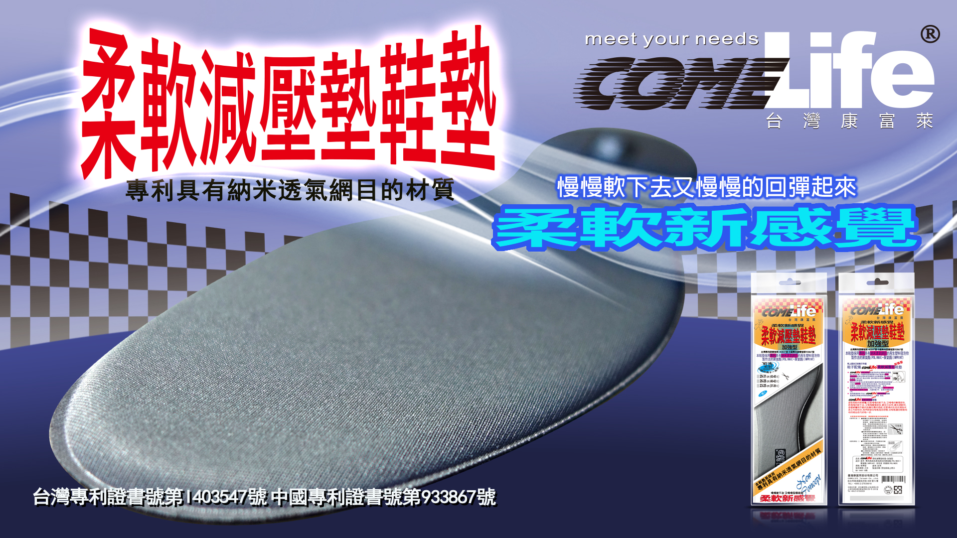- 我們建議穿鞋子加上COMELife柔軟減壓墊(加強型)鞋墊,是邁向文明進步時尚的新慨念—柔軟、衛生。